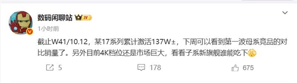 快科技10月18日动静,洛图科技(RUNTO)将全年Mini LED电视的预测销量从岁首年月的万万调至802万台。